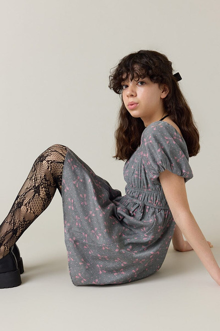 Hello Franki Puff Sleeve Bow Print Peasant Dress for girls