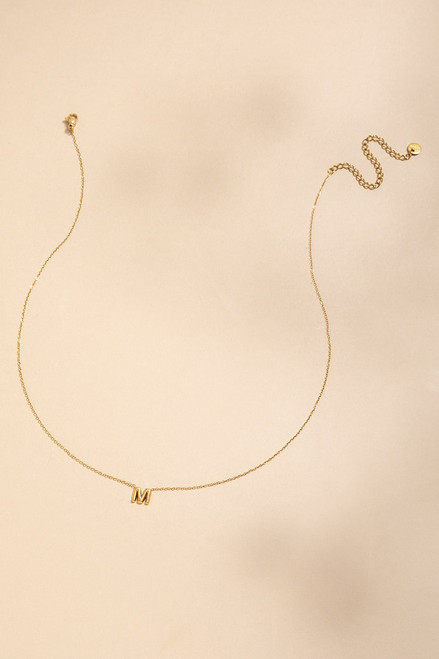M Mini Initial Stainless Steel Pendant Necklace