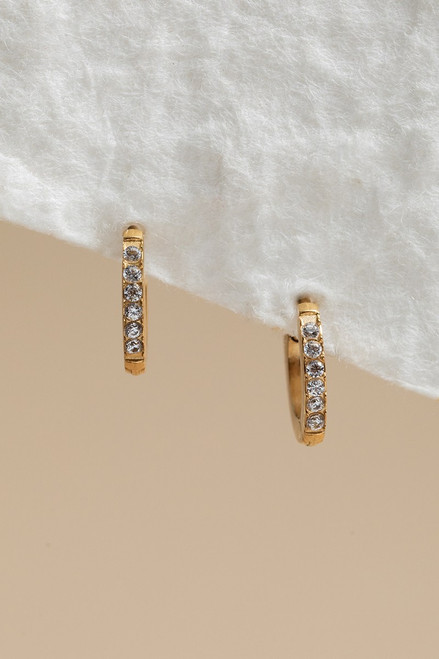 Sandy Stainless Steel Pave Huggie Earrings